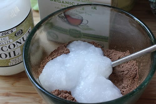 - Take 1 tablespoon of cocoa powder and mix it well with 2 tablespoons of coconut oil.