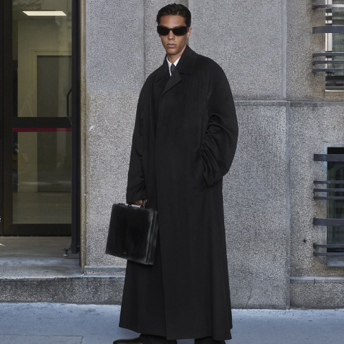 Demna chose restraint over spectacle. Gone were the shock‑value gimmicks—this time, clean architectural tailoring, sculpted coats, and dramatic collars took center stage. The emphasis was all about technique: hundreds of hours went into hand‑stitched drapery, feather‑embroidered coats, and reinvented silhouettes that merged tradition with modernity.