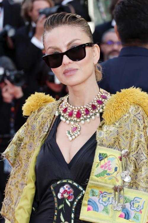 Known for her bold and eclectic fashion choices, Natasha Poonawalla wore a vintage Dior dress from John Galliano’s India-inspired collection. She layered it with a statement jacket from the Fall/Winter 2002 archive, blending maximalism with nostalgia.