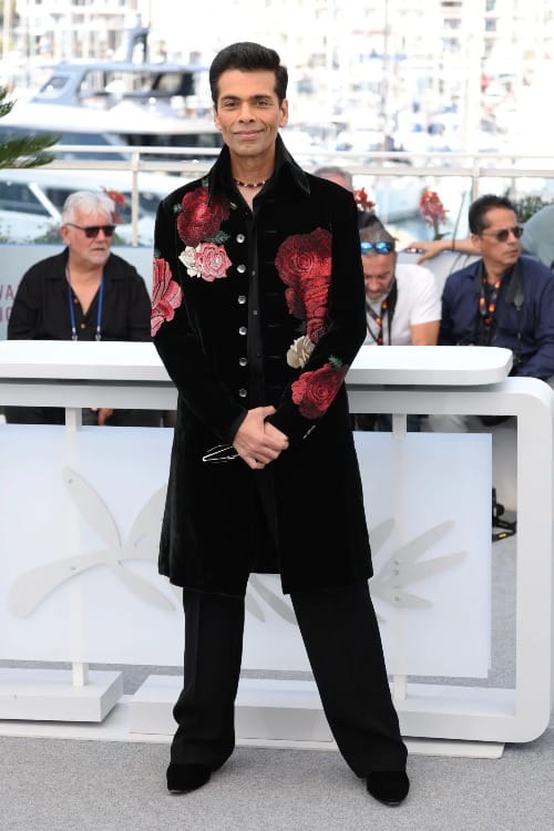 Karan Johar made a sharp impression in a custom-fitted outfit by Manish Malhotra, paired with a sleek Omega Speedmaster 38mm watch.