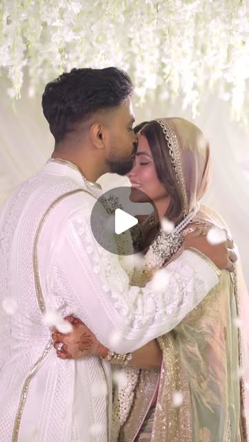 Hina chose a handloom opal-green saree adorned with gold and silver threadwork, gota pleating, and a soft pink scalloped veil. A unique and intimate touch: their names were embroidered in Devanagari script, connected by an infinity symbol, symbolizing their 13-year journey.