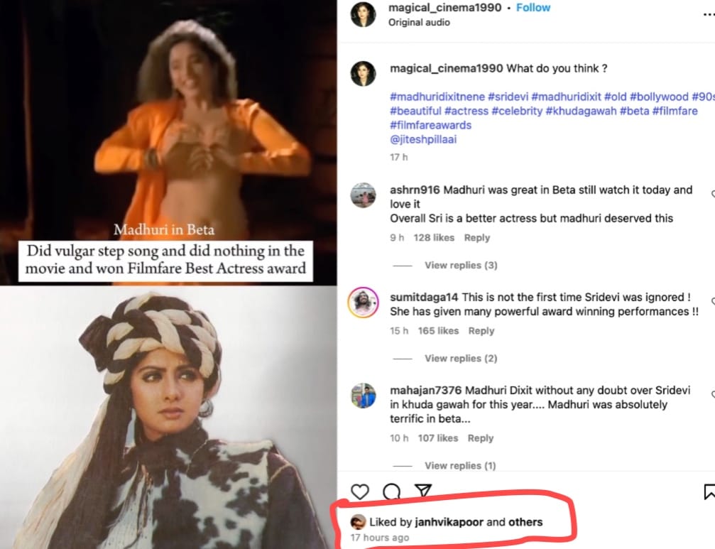 Janhvi Kapoor Sparks Online Buzz After Liking Controversial Post Comparing Madhuri Dixit and Sridevi