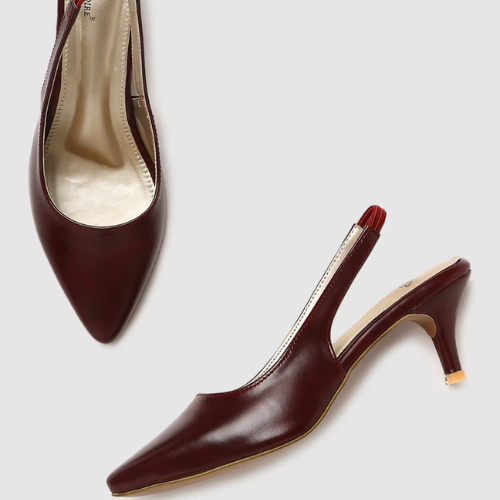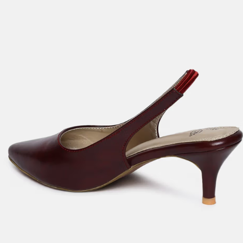 Walk with comfort and style with this maroon pair of heels by Marc Loire. Made with good quality PU leather, it features slip-on closure and pointed toe. Pair it with the jeans & top to complete your ensemble.