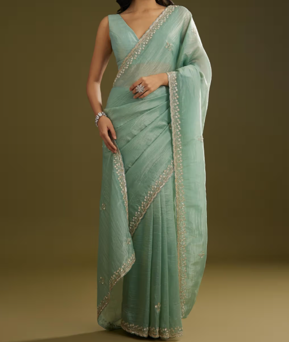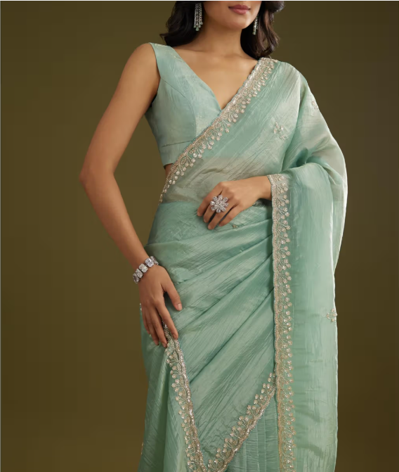 Kalki Fashions Green Tissue Embellished Saree