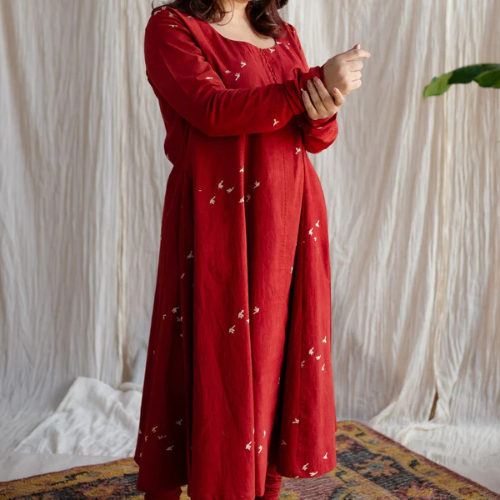 4. Sireen Dabu Slub Cotton Hand Embroidered Kali Kurta