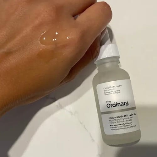 - Use 2–3 drops of The Ordinary Niacinamide 10% + Zinc 1% on slightly damp skin.