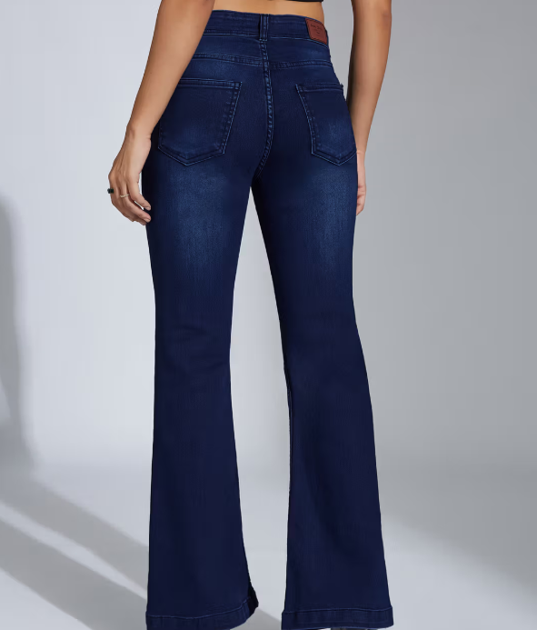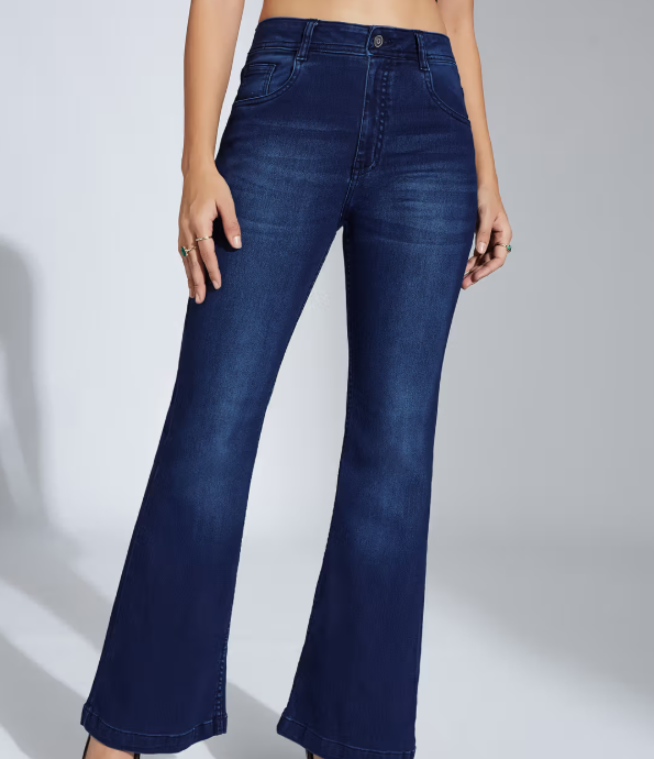 Look Effortlessly Stylish With These Miss Chase Women's Navy High-Rise Regular-Length Stretchable Flared Jeans. Designed To Flatter Your Figure, They Offer The Perfect Blend Of Comfort And Stretch. Whether You're Dressing Up Or Keeping It Casual, These Jeans Will Elevate Your Look Every Time.